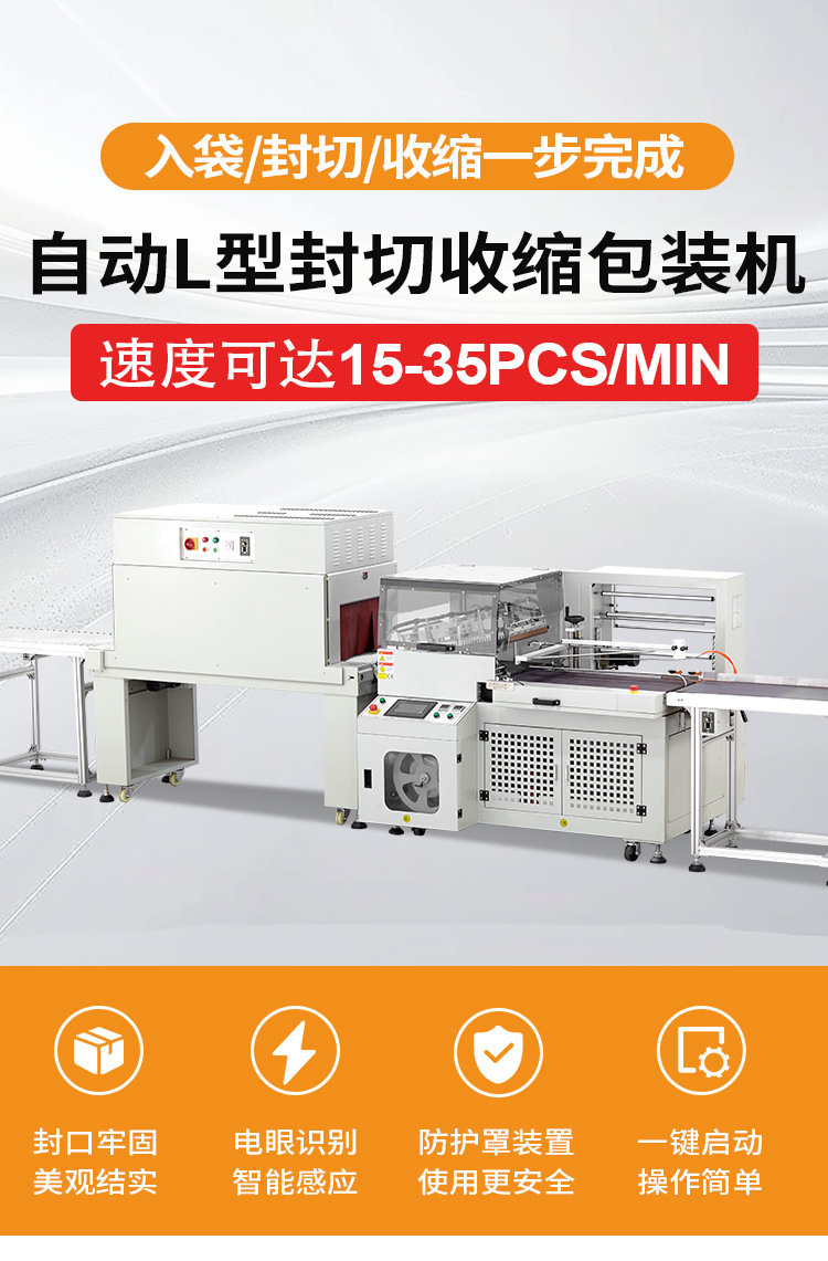 自動L型封切收縮包裝機是一款針對薄小產(chǎn)品專門研發(fā)生產(chǎn)設(shè)計的經(jīng)濟型封切機,具有自動送膜打孔,套膜封切的工作特點。同時,只需手動調(diào)節(jié)導(dǎo)膜系統(tǒng)以及手動調(diào)節(jié)進料輸送平臺,速度可達15-35件每分鐘,封切線細、居中,包裝效果平整美觀,適用不同寬度及高度的產(chǎn)品,廣泛用于化妝品、醫(yī)藥、食品、軟件、飲料、煙草、日化、汽車、線纜、電子等大批量產(chǎn)品收縮包裝。